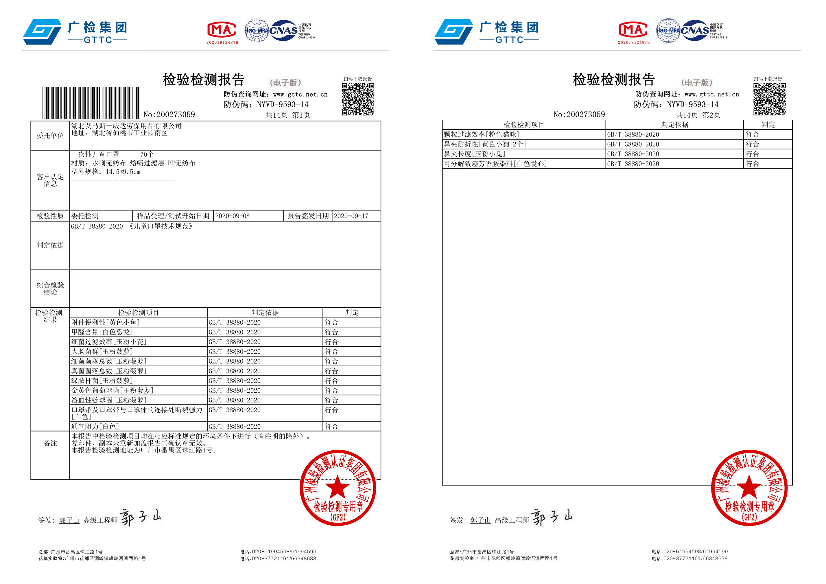 GB/T38880-2020 Anti Virus Printed Children'S Protective Face Mask 145x95mm Images |